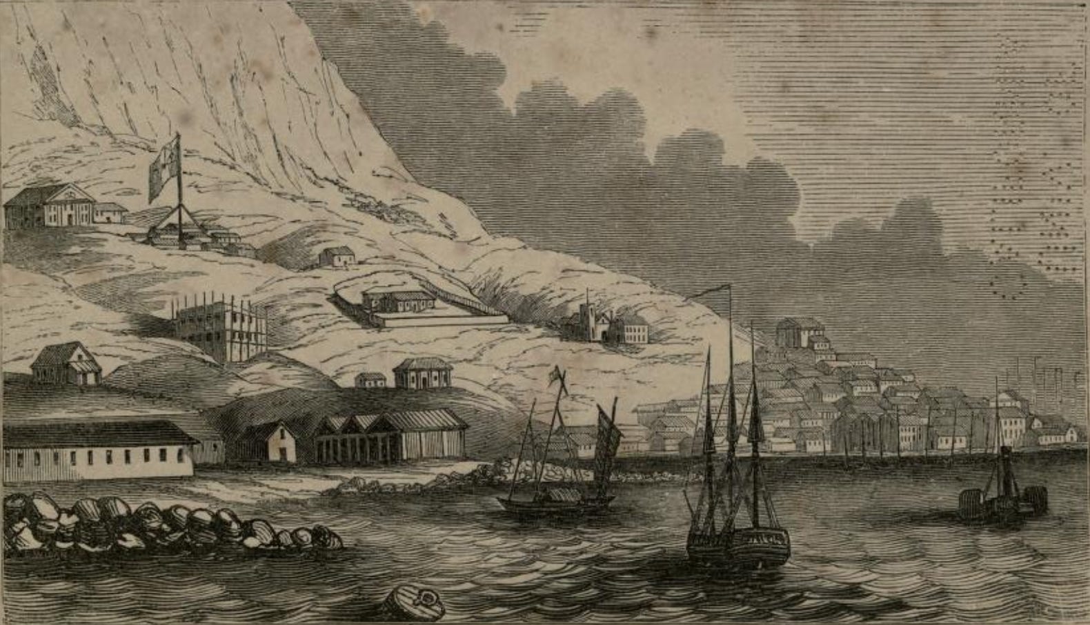 Figure 8. ‘Hong Kong’ c.1842. Source: The Chinese War by John Ouchterlony. It shows many permanent buildings having sprung up in a year or so.