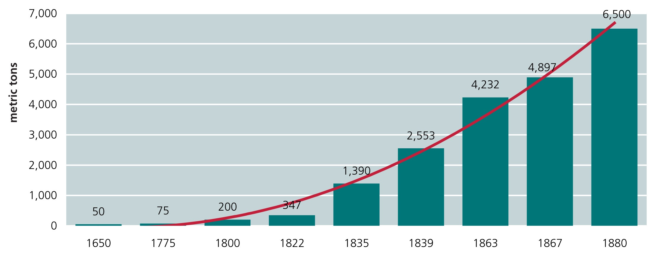 Figure 5. ‘Imports of opium into China (port of Canton), 1800/01 – 1838/39’. Source: World Drug Report 2008.
